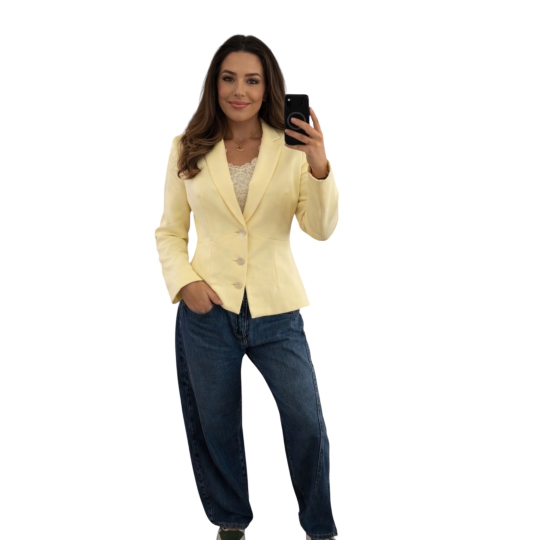 Deze gele blazer voor dames heeft een mooie getailleerde pasvorm waardoor hij elegant en vrouwelijk valt. Een stijlvolle blazer die je zowel casual als chic kunt combineren.