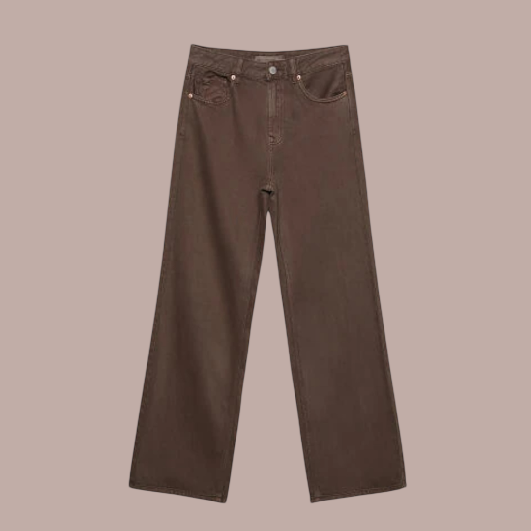 De warme bruine kleur maakt hem net even anders dan een standaard blauwe of zwarte jeans. Je combineert hem makkelijk met een sweater, blouse of jasje. Zelf vind ik hem superleuk met onze bruine hartjes trui – echt een cozy look! Sneakers eronder voor casual, of hakken voor een classy avondje uit.