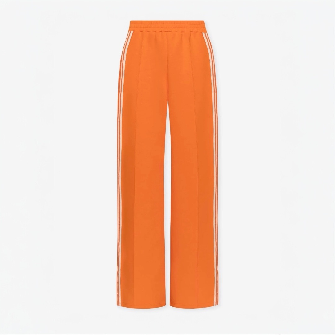 Deze oranje broek dames combineert comfort, kwaliteit en trend in één item. Met de elastische tailleband, comfortabele katoenen stof en sportieve witte strepen is dit een veelzijdige broek die niet mag ontbreken in je garderobe.