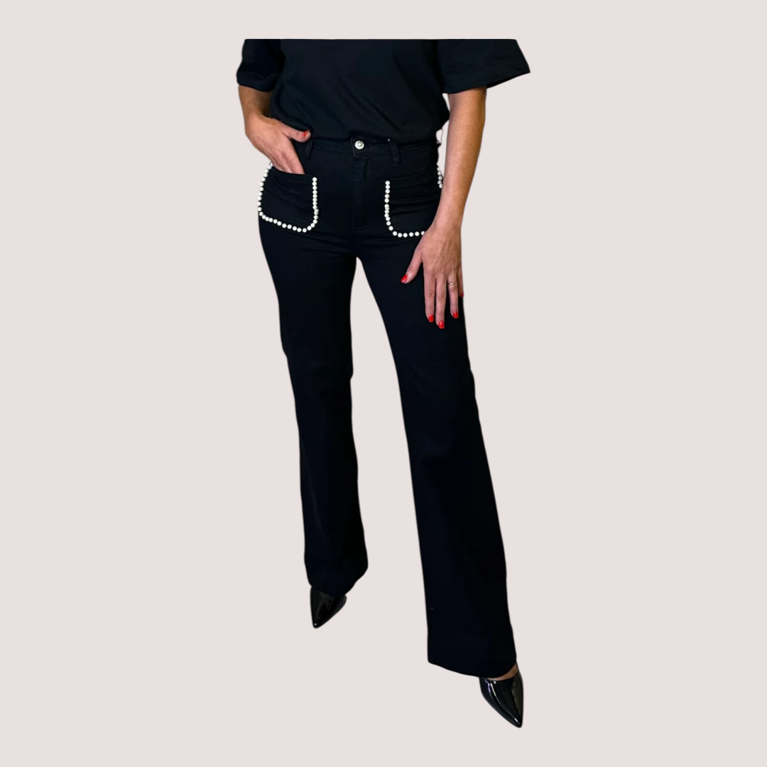 Zwarte wide leg jeans met parelzakken – een echte musthave!