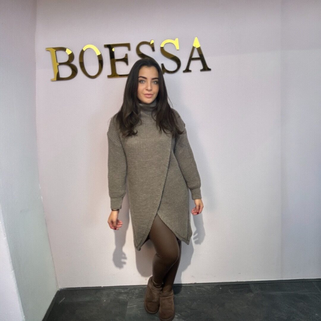 De elegante overslag aan de voorkant geeft de jurk een speelse en vrouwelijke uitstraling, terwijl de col je heerlijk warm houdt op frisse dagen. De achterkant is iets langer, waardoor het model mooi valt en jouw outfit een luxe uitstraling krijgt. Dit is zo’n item dat je één keer aantrekt en meteen denkt: ja, dit is er één die ik vaak ga dragen.