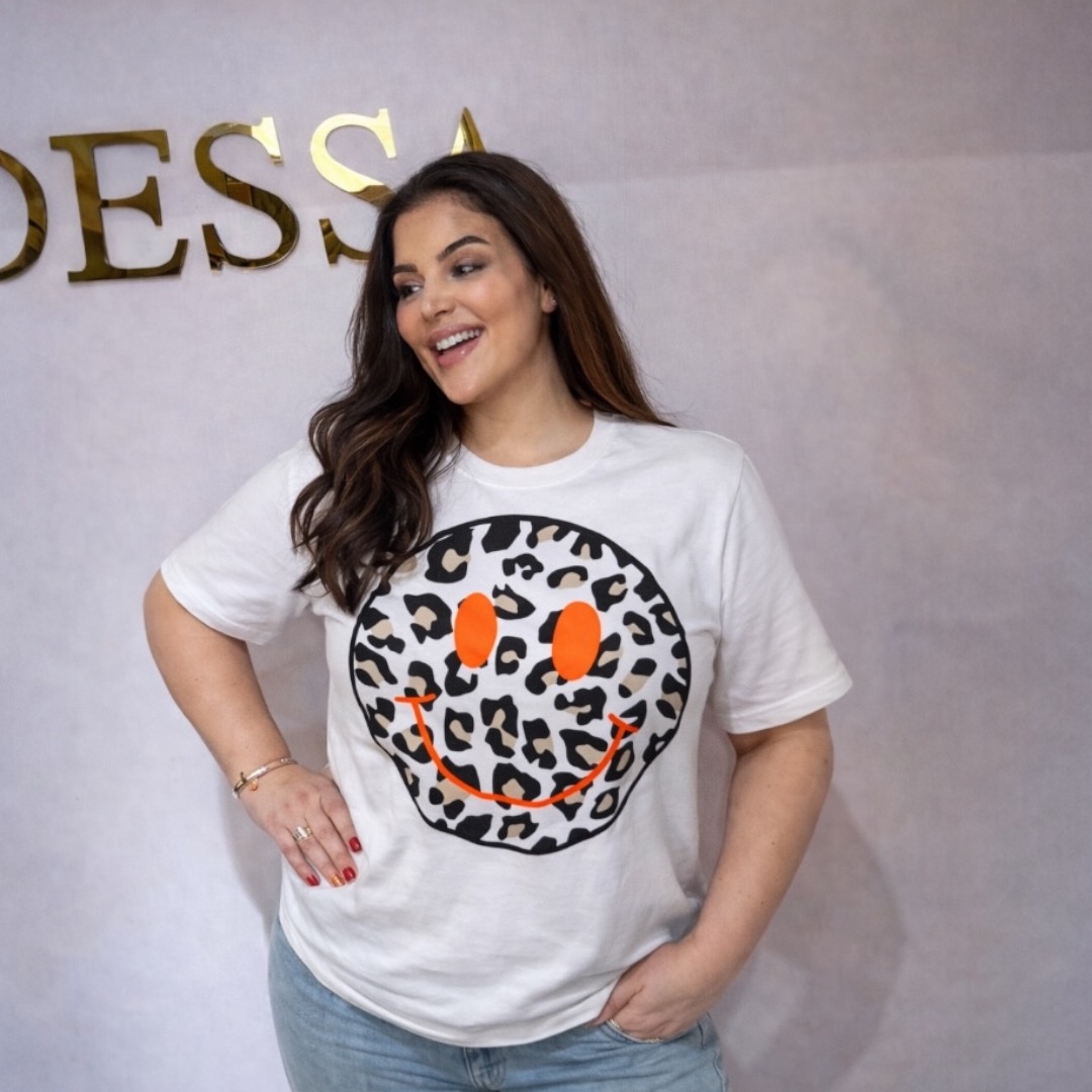 Dit wit T-shirt dames smiley oranje is een musthave voor iedereen die houdt van comfortabele kleding met een vrolijke en opvallende twist. Perfect voor elk seizoen en elke gelegenheid waar je wil opvallen.