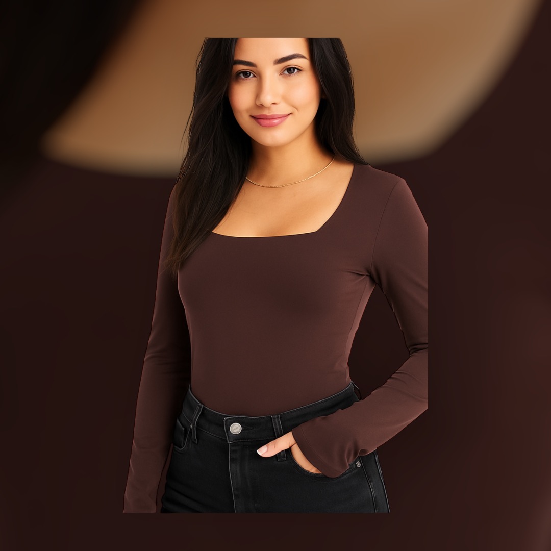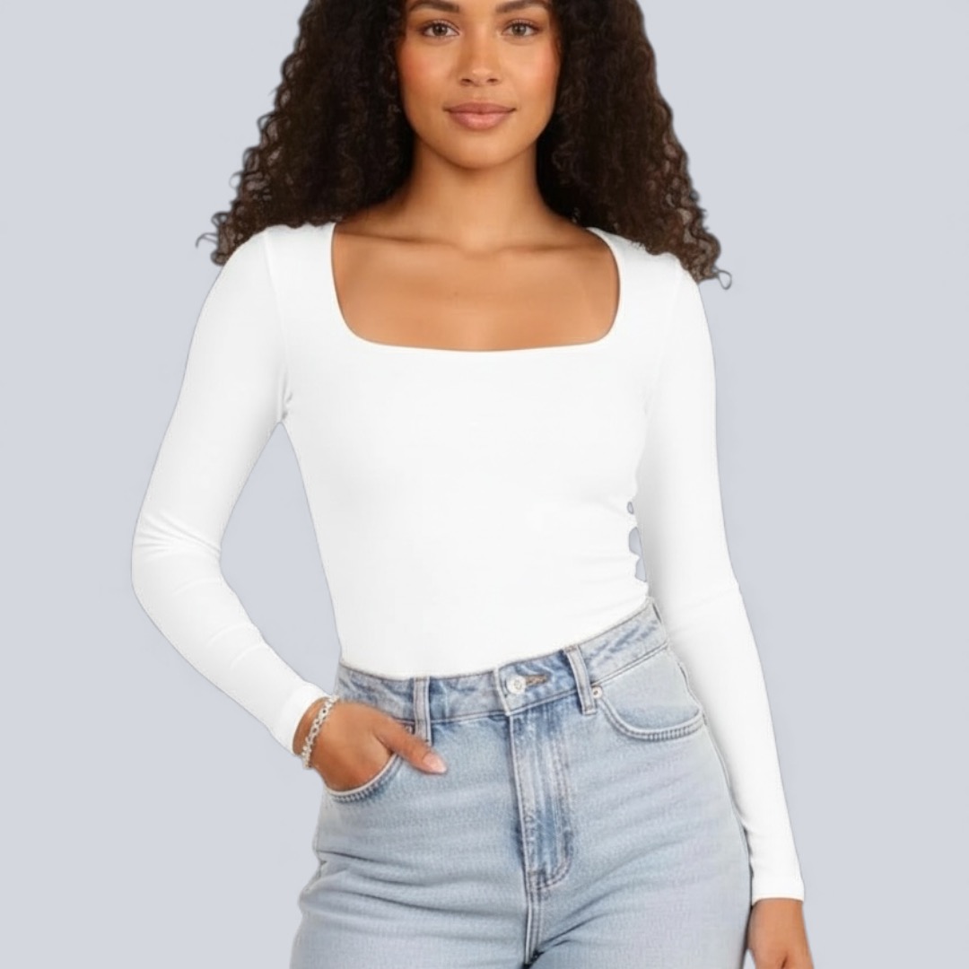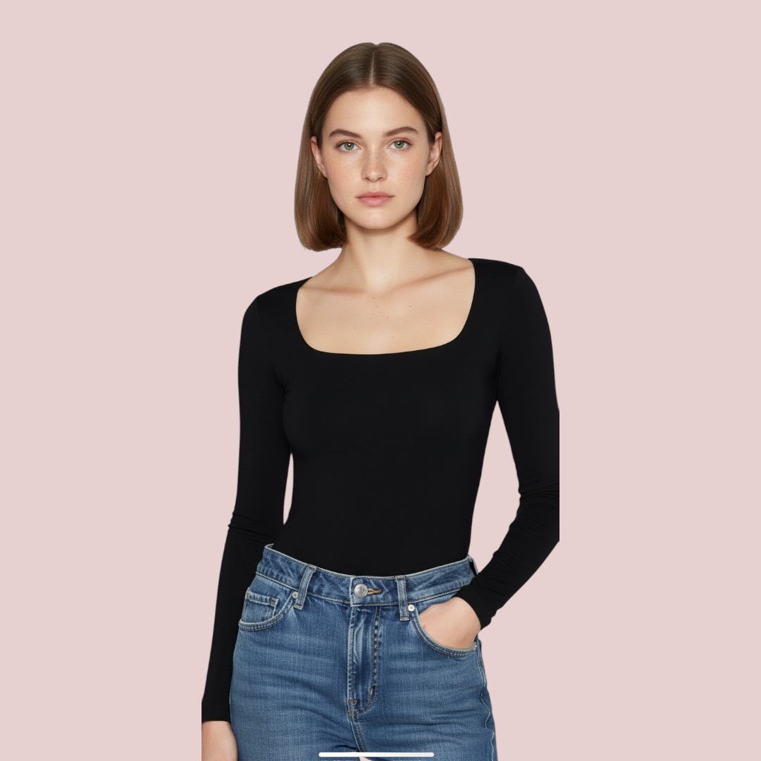 Long Sleeve Bodysuit met Vierkante Hals – 3 Kleuren