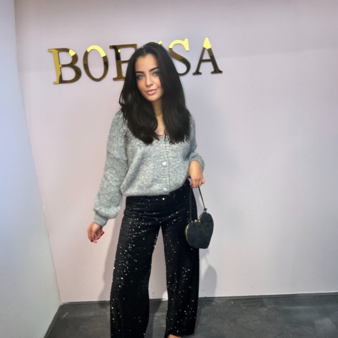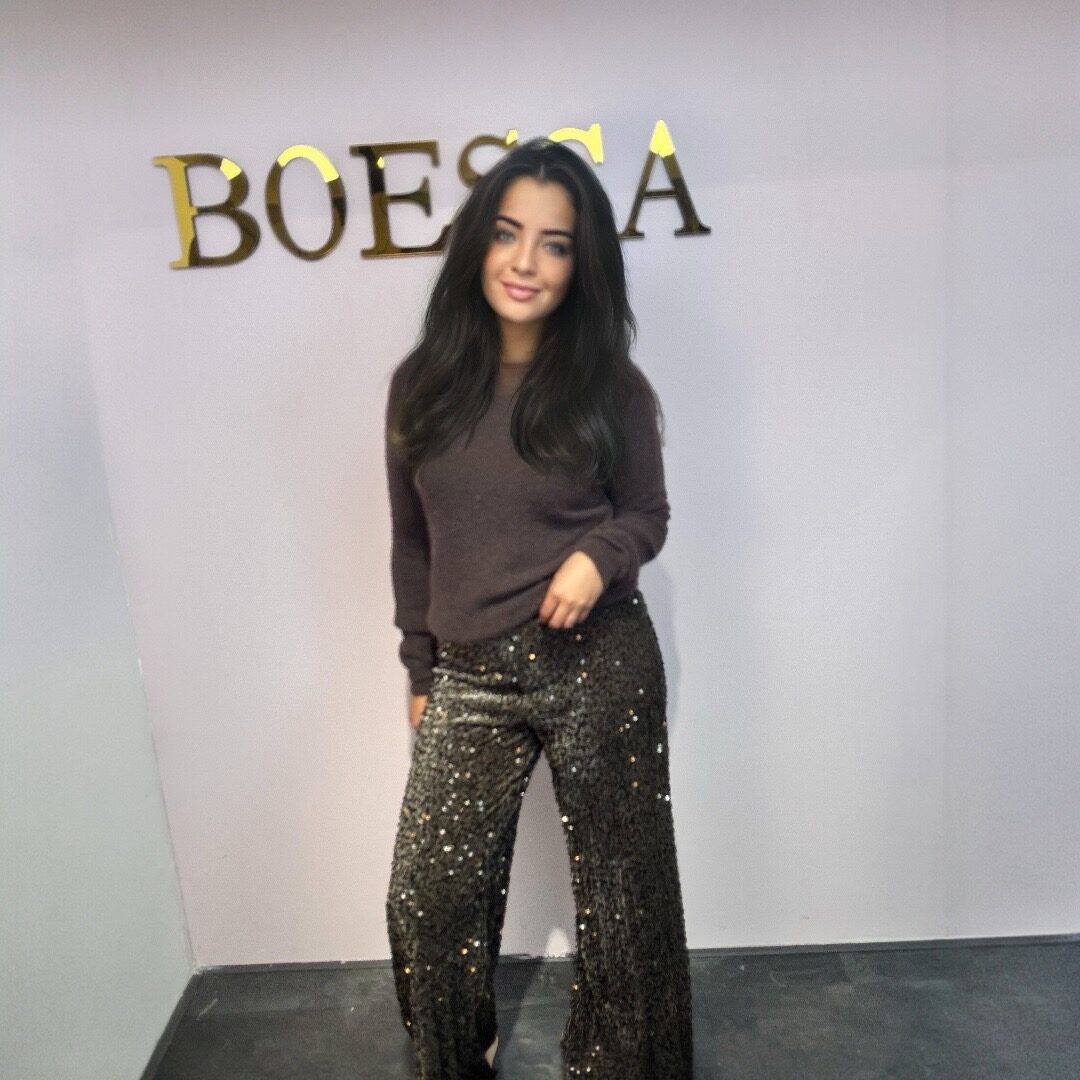 Deze glitterbroek voor dames is dé perfecte feestbroek: een wide leg model met elastische tailleband, volle pailletten en een zachte binnenvoering zodat hij niet prikt. Verkrijgbaar in champagne, bruin en zwart – ideaal voor elke party, avondje uit of feestdag.