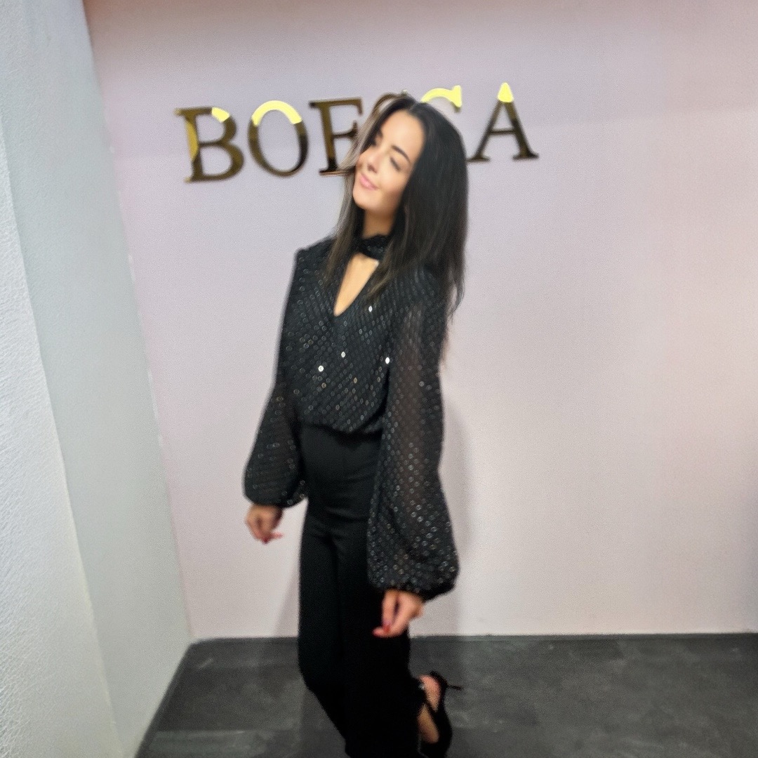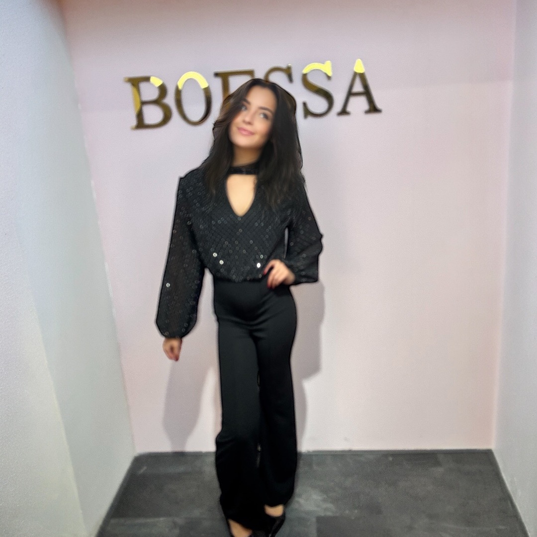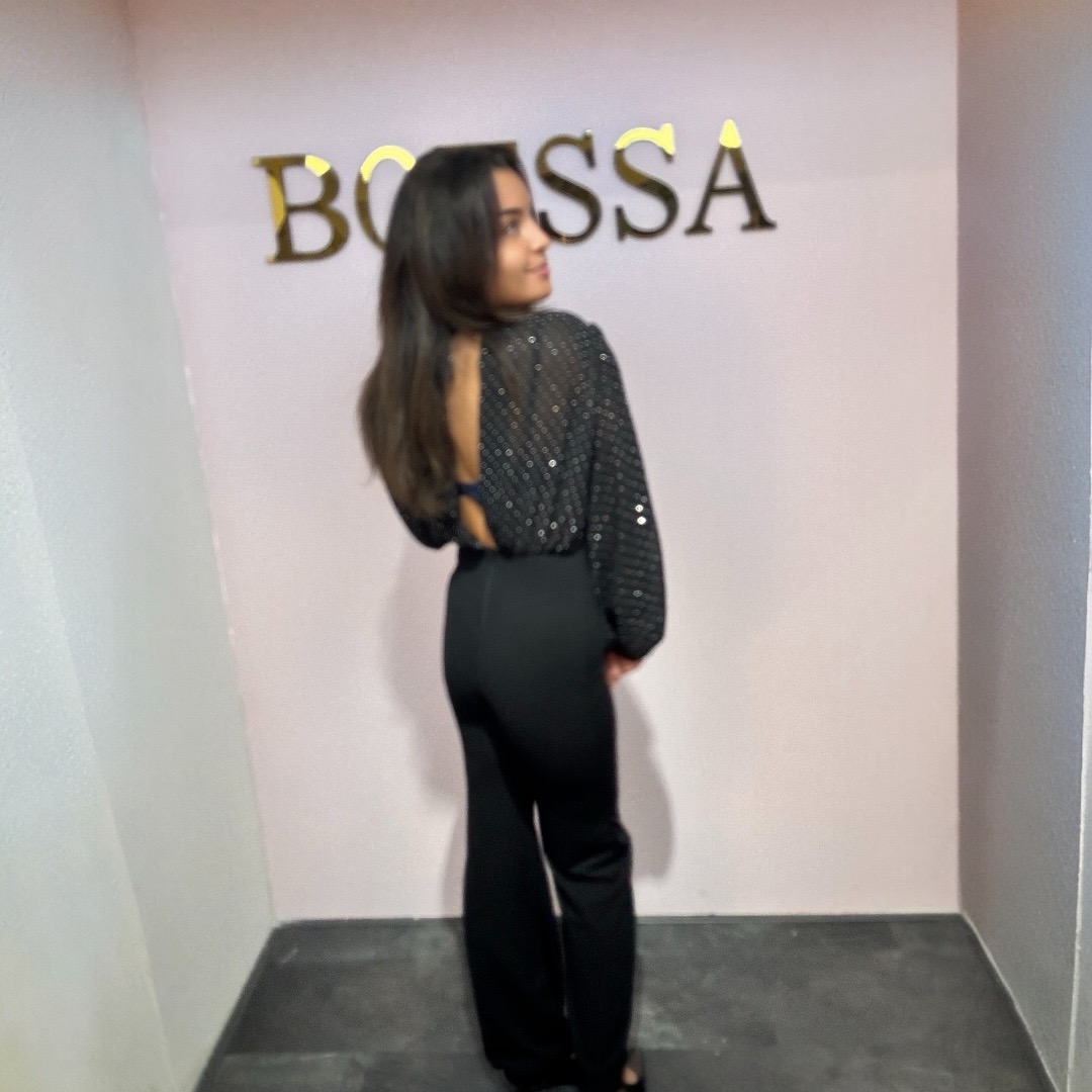 Steel de show met de Studz Glamour Jumpsuit – een onweerstaanbare mix van glamour en comfort. Deze zwarte one size jumpsuit is ontworpen voor vrouwen die willen stralen. De top is volledig versierd met fonkelende glitters en studs, wat zorgt voor een luxe, feestelijke uitstraling.