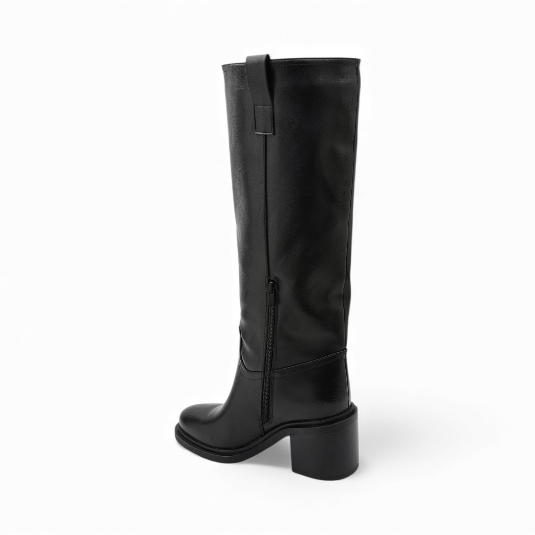 De High Black Boot is dé perfecte laars voor wie houdt van een elegante, maar stoere look. Deze hoge zwarte boots zijn uitgevoerd in een prachtige leather look en hebben een stevige blokhak van 7 cm, inclusief een comfortabel plateau van 1 cm. Hierdoor lopen ze verrassend comfortabel, terwijl je toch extra lengte en uitstraling krijgt.