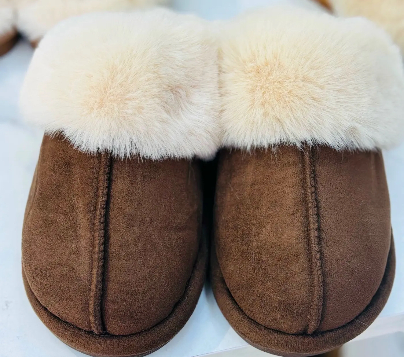 Op zoek naar warme, stijlvolle en duurzame pantoffels? Deze donkerbruine suède pantoffels zijn precies wat je nodig hebt voor de koude maanden. Gemaakt van hoogwaardig suède aan de buitenkant en gevoerd met super zachte imitatie-wol, bieden ze de perfecte balans tussen comfort en luxe.